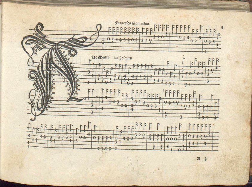 Nel XV secolo alcuni musicisti cominciarono a trascrivere le più belle composizioni vocali perché potessero essere suonate su nuovi strumenti con i tasti: organi, cembali arcaici, e il più moderno liuto. Le polifonie che intonavano versi poetici persero così il legame originario con la parola e divennero qualcosa da “toccare”. Tutte quelle voci, infatti, potevano suonare insieme grazie all’intrecciarsi delle dita e dei gesti che sembravano disegnare linee invisibili sulla tastiera. Nacque così l’intavolatura: un metodo alternativo per scrivere la musica, fatto apposta per farla passare dalla bocca alle mani.